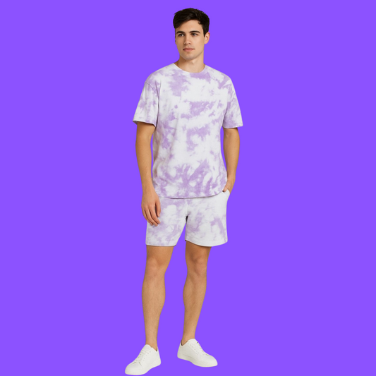 Oversized White & Lavender Unisex Co-ords | Premium Tie-Dye Streetwear Set