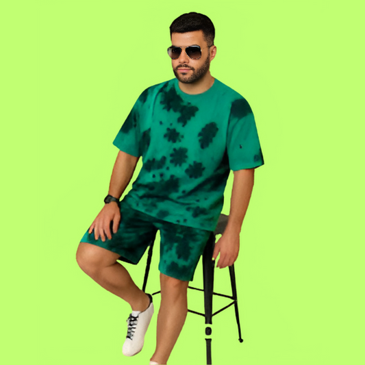 Oversized Green & Black Unisex Co-ords | Premium Tie-Dye Streetwear Set